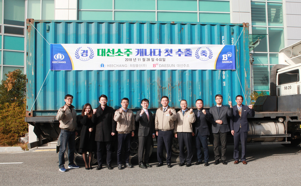 대선주조는 지난 11월 28일 오전 11시 대선주조 기장공장에서 ‘대선소주 캐나다 수출 기념식’을 열었다.