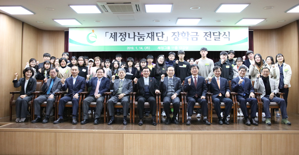 세정나눔재단은 지난 1월 14일(월) 오전 11시, 금정구 부곡동 세정그룹 본사 대강당에서 ‘2019년 상반기 세정나눔재단 장학금 전달식’을 개최했다.